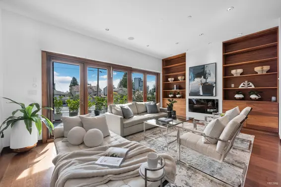 This magnificent custom built residence in prime Dundarave offers approx. 4,000 sqft of luxurious living across 3 expansive levels. Thoughtfully designed w/ a bright, open concept layout, it features soaring 10 ft ceilings on the main level, seamless indoor-outdoor flow through California style folding glass walls opening to a private sun filled flat backyard. The gourmet German Poggenpohl kitchen includes a large island, breakfast bar, Miele appliances & fully equipped wok kitchen. Upstairs hosts 4 spacious bedrms. Lower level features media rm, wine cellar, recreation rm & bedrm. Glass roofed wraparound balcony, Smart Home system, backup generator, RV Parking and more. Minutes away from top schools, shopping & community amenities. Open Sat Dec 13, 2-4pm