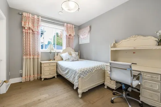 This luxurious 7-bedroom, 8-bathroom contemporary residence offers over 4,000 sq.ft. of refined living space with thoughtful design and exceptional craftsmanship. The main level features a spacious open layout with grand ceilings, elegant hardwood floors, and a gourmet kitchen with wok kitchen—perfect for entertaining family and guests. A legal 2-bedroom suite with a separate entrance provides excellent rental income or in-law accommodation. Upstairs showcases three generously sized ensuite bedrooms, while the lower level includes a media room, gym, and wet bar for ultimate comfort and leisure. With four laundry areas, a laneway house attached to a double garage, and radiant heating throughout, this home blends modern luxury with functional versatility.