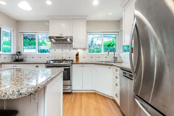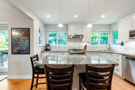 Seldom available 4 Bdrm ‘Silverdale Place’ family home set on a beautifully manicured 9,400 sq/ft north/south oriented lot. The well-maintained home offers over 2,900 sq/ft across 2 levels and features thoughtful updates and terrific suite potential on the lower level. The main floor is a comfortable size with over 1,600 sq/ft including spacious rooms, refinished original oak floors, and a bright southern exposure (with peek-a-boo city skyline views). The updated kitchen features shaker cabinets, granite counters, centre island with bar stool seating, stainless appliances (including a gas stovetop), and features expansive windows overlooking the backyard. The adjacent generous sized dining room is ideal for entertaining or family living and opens to the spacious living room that features a gas fireplace with timeless marble surround and large picture windows overlooking the beautiful front gardens. Adjacent to the living space is a skylit vaulted ceiling flex space with an abundance of windows – currently used as a family room/home office. Completing the main are 3 bedrooms and 2 bathrooms including the primary bedroom with walk-in closet and 2-piece ensuite. The second bathroom is tastefully updated with granite counters, shaker cabinets, and an inviting bathtub with a practical tiled surround. The lower level offers suite potential (with separate entrance) though is currently configured for single family living and features a large recreation room/gym, family room, 4th bedroom, office/den, and a 3-piece bathroom. Completing the lower level is a large laundry room/mud room with terrific built-in storage. Situated on a 78’ x 118’ EFF lot with well cared for mature gardens in both the front and the back. The backyard was professionally landscaped with a Trex deck off the main (perfect for barbecuing) and leads to a large patio with a dining area as well as an intimate seating area. Completing the yard are two grassed areas and extensive gardens including three raised beds perfect for growing vegetables. Set in a terrific Upper Delbrook location with Delbrook Plaza shops and services steps from your door, close to trails, with transit at the end of the street, and just a 20 min walk to Edgemont Village and Westview Shopping Centre.