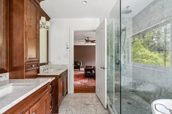 - Outdoor Areas: 1,200 sq/ft patio off the main with covered sitting area featuring built-in heaters, speakers, and access to an in-ground hot tub, fully fenced backyard