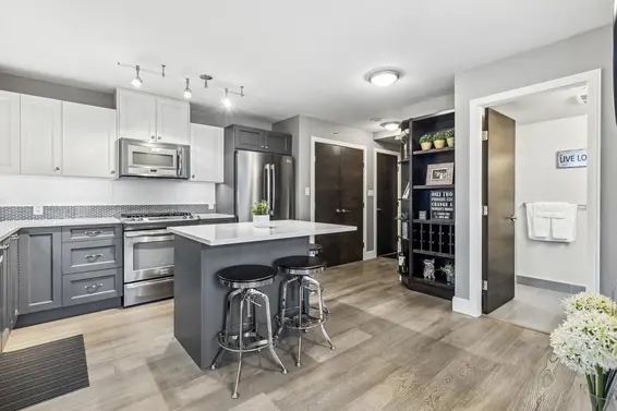 Fully updated corner home at the sought after 'Time' building in the heart of Lower Lonsdale. Offering 2-bedrooms, 2-bathrooms, and 924 sq/ft with a bright south facing exposure and spectacular views of the Inner Harbour, city skyline, and Stanley Park. The thoughtful open-plan layout features wide-plank flooring throughout, built-in decorative shelving, a calming natural gas fireplace, and is anchored by a spacious and functional kitchen with two-tone shaker cabinets, stainless steel appliances including a gas range, and island with extra storage and barstool seating. Floor-to-ceiling windows flood the home with light, and a large slider provides access to the southeast covered balcony, great for year-round entertaining and morning sunrises. The two spacious bedrooms are well separated, including a primary suite with lay-in-bed views, his-and-hers closets, and an updated 5-piece ensuite; the second bedroom is perfect for family, as a guest room, or an office, and is ideally located next to a 3-piece bathroom with frameless glass shower. One parking and one storage locker included. Set in a super desirable location with all amenities at your doorstep including the Shipyards, Lonsdale Quay Market; the Brewery District; transit (Seabus + new RapidBus line); Waterfront Park, the Spirit Trail; and neighbourhood shops and an abundance of restaurants.