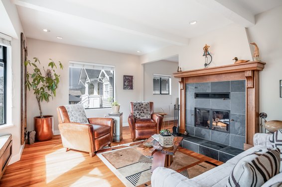 Renovated Upper Lonsdale entertainers delight! Although the home looks modest and traditional on the outside, the interior features extensive updates and a tasteful, modern addition that is sure to impress! Offering 3 bedrooms, 2 bathrooms, and 2,306 sq/ft with a well-thought-out floor plan perfect for everyday enjoyment and entertaining. Featuring a sundrenched, south facing living room with bay windows (including a built-in window bench), peek-a-boo city views, and a wood burning heatilator fireplace. The highlight of the home is the adjacent open plan great room addition that features vaulted cathedral ceilings, a linear gas burning fireplace with elegant floor-to-ceiling surround, extensive windows, sky lights, and French doors to the private patio for seamless indoor/outdoor living. The open plan kitchen includes extensive cabinet space, stainless appliances, timeless granite counters, large centre island, and a spacious attached dining/eating area. Completing the main are two bedrooms and two bathrooms including the large primary suite with walk-through closet, built-in wardrobes, and a 3-piece ensuite with frameless glass shower. The lower level offers a third bedroom, flexible use den/mud room (with exterior access), large laundry closet, utility room storage, and access to an encapsulated crawl space. Also down is a completely separate, 346 sq/ft unfinished space under the family room addition - ideal as a workshop, dry storage, or with the potential to combine with the lower level for added living space or for a secondary suite if desired. Set on a professionally landscaped lot with an intimate front yard patio, and extensive decks and patios in the backyard including a large deck that runs the width of the home. The remainder of the backyard is hardscaped, perfect for low maintenance enjoyment, and includes a basalt patio and a fish pond, and a natural gas fire bowl plus built-in barbecue. Featuring terrific off-street parking including a carport with access from Kings, a two small car 19'11 x 14'11 garage/workshop, and an additional parking pad/carport off the back lane. Set on a 50’ x 132’ lot with rarely available for the DNV lane access (and coach house potential – confirm with the DNV). Additional features include solid cherry floors, heat pump, on demand hot water, in ground irrigation, and low voltage landscape lighting. Situated in a rarely available central location with all Upper Lonsdale shops and amenities steps from your door; next to transit; close to Braemar Elementary, Ecole André-Piolat, and Carson Secondary; and with parks and trails nearby.