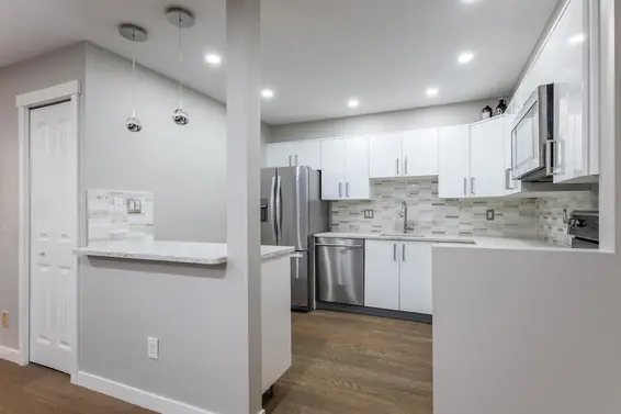 - Included Items: Fridge, stove, dishwasher, microwave, washer, dryer, all window coverings, built-in closet organizers + storage racks