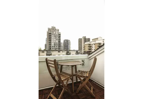 Spacious top floor south facing 1 bedroom suite in the iconic "Old Colony" a City of North Vancouver landmark building. The practical, partially open plan features a galley kitchen with stainless appliances and a pass-through to the adjacent dining room. The bright living room offers built-in bookcases and lovely wood windows and a French door leading to an intimate balcony with peek-a-boo views to the ocean and Lions Gate Bridge. The large master bedroom offers plenty of closet space, room for multiple dressers, and a dormer style window. Completing the space is an updated bathroom and a large flex space ideal as a storage room or large enough to use as a den/office. Well maintained, self-managed building with newer roof, boiler, and plumbing. Shared laundry, pets not allowed, rentals restricted to max 4. This walk up building is for the young, or young at heart, in a fabulous Central Lonsdale location steps to all amenities including Starbucks, City Market, and transit.