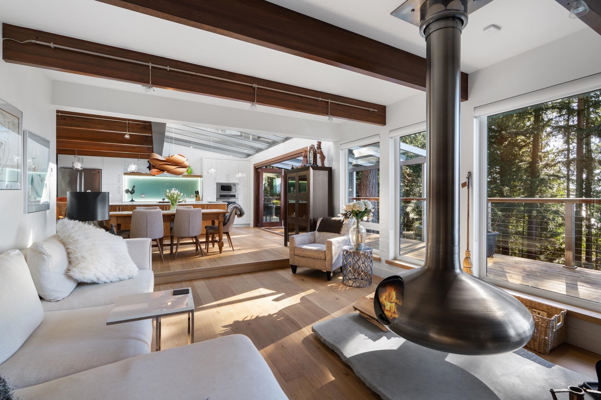 This residence truly embodies the beauty of West Coast architecture, with thoughtful design, quality craftsmanship, and warm, organic finishes throughout. Expansive window walls blur the line between inside and out, filling the home with natural light and framing the surrounding views at every turn.